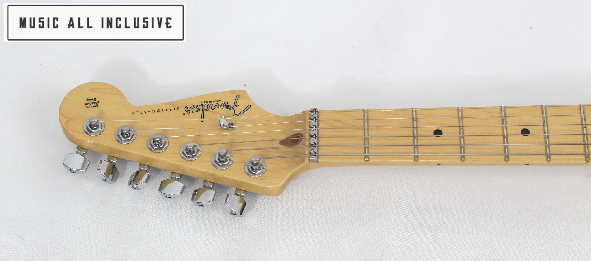 Su puente synchronized tremolo mantiene estabilidad en la afinación y permite efectos expresivos con la palanca de vibrato, mientras que el acabado de calidad resalta la belleza de esta Stratocaster americana.