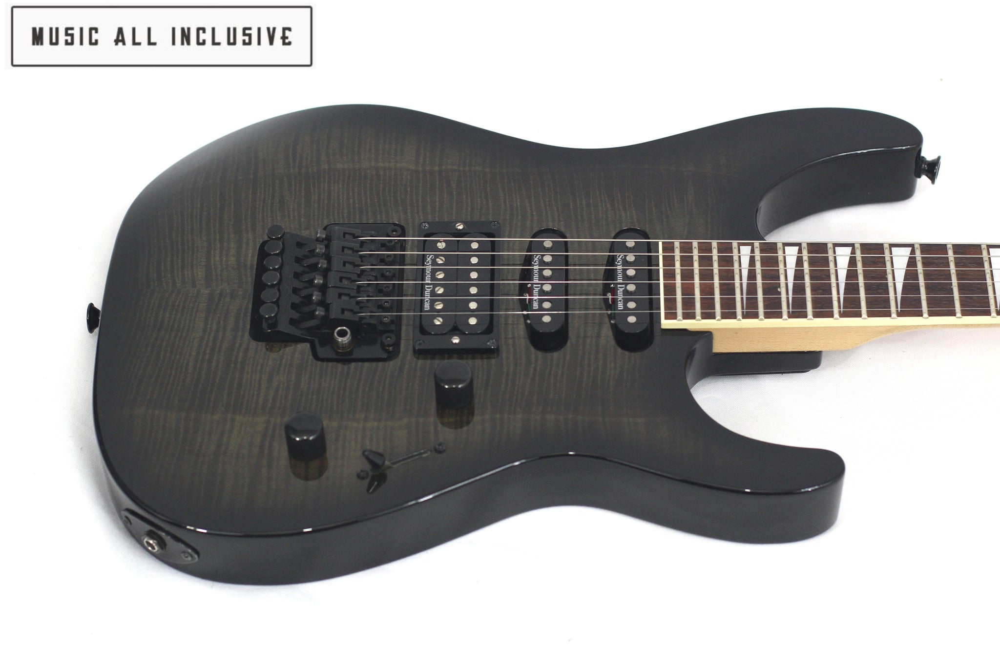 La Jackson Dinky DK2 Trans Black, fabricada en Japón, es una guitarra de alta calidad pensada para guitarristas exigentes. Su cuerpo de aliso con tapa de arce flameado destaca con un elegante acabado Trans Black, resaltando las vetas de la madera con un look moderno y sofisticado. Su mástil de arce atornillado con diapasón de palisandro y radio compuesto brinda una ejecución rápida, ideal para solos veloces y técnicas modernas.