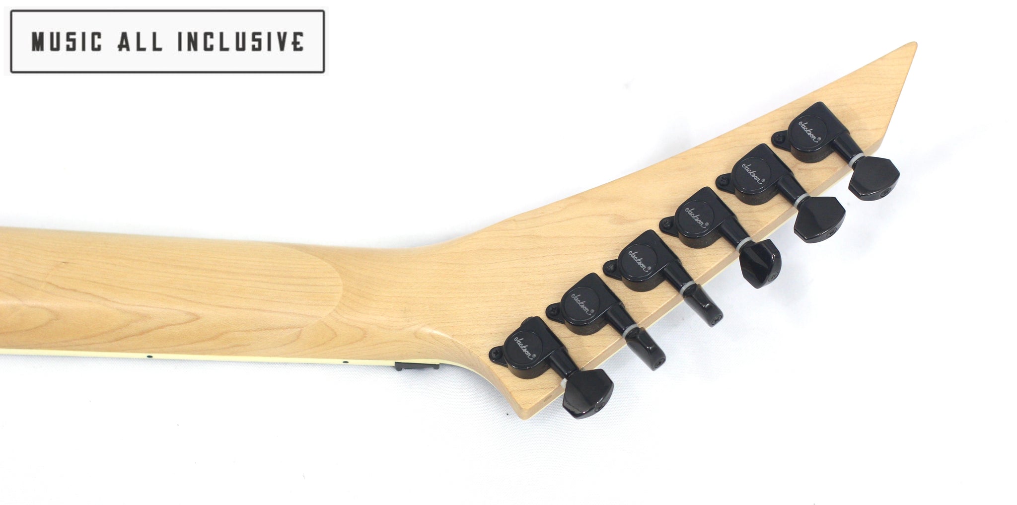 El puente Floyd Rose original asegura estabilidad de afinación incluso en uso extremo de la palanca, mientras que el diseño Dinky mantiene la comodidad y el balance característicos de Jackson.